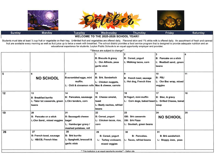 We are excited to announce that Leyton Public School's students will receive FREE meals for the 2025-2026 school year under the Community Eligibility Provision (CEP). This is for ALL students regardless of previous/current eligibility. Please note that there will still be charges for 2nd entrees and extra/snack milks.