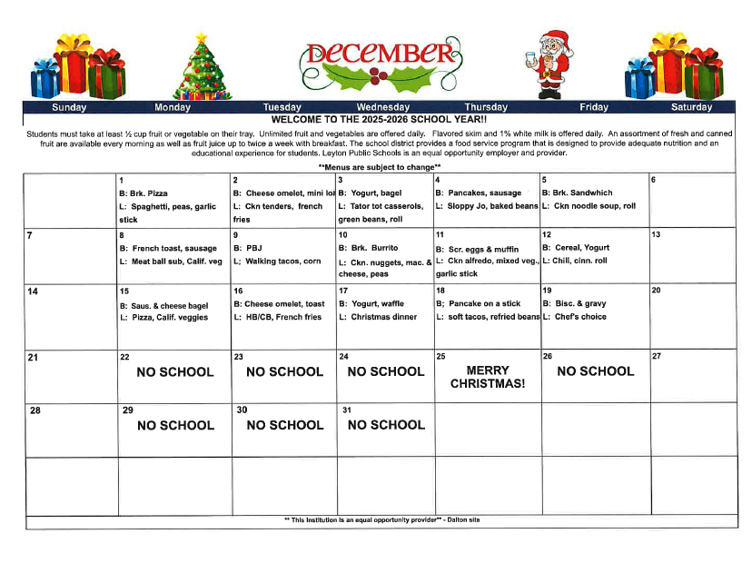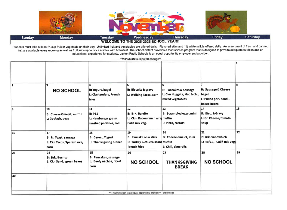 We are excited to announce that Leyton Public School's students will receive FREE meals for the 2025-2026 school year under the Community Eligibility Provision (CEP). This is for ALL students regardless of previous/current eligibility. Please note that there will still be charges for 2nd entrees and extra/snack milks. ![]()